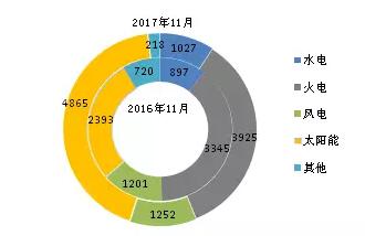 圖1截至2017年11月底我國分類型新增裝機(jī)情況