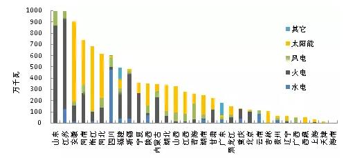 2017年1-11月,我國新增裝機(jī)主要集中在山東、江蘇、安徽、河南、浙江、河北、四川、福建等省份(新增裝機(jī)均在500萬千瓦以上),占新增裝機(jī)總量的62.1%;