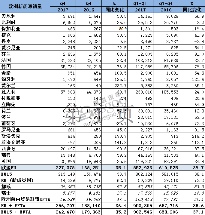 據(jù)歐洲汽車制造協(xié)會(huì)(ACEA)公布的數(shù)據(jù)顯示,2017年第四季度,歐盟地區(qū)新能源汽車的需求量繼續(xù)保持增長(zhǎng),同比增幅達(dá)到35.1%,總計(jì)售出227,378輛,在整個(gè)乘用車銷量當(dāng)中的占比達(dá)到6.7%。