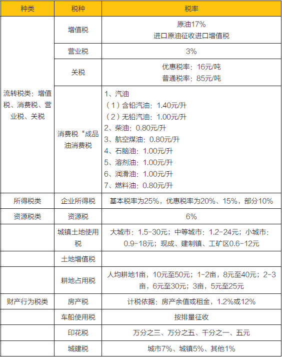 表1 中國(guó)石油行業(yè)主要稅費(fèi)一覽表