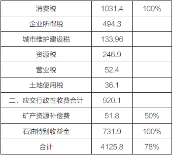 我國(guó)現(xiàn)行的18個(gè)稅種中,所有稅種都適用于石油行業(yè)。增值稅、消費(fèi)稅、營(yíng)業(yè)稅、關(guān)稅、企業(yè)所得稅、城鎮(zhèn)土地使用稅、耕地占用稅、土地增值稅等是石油稅制的主體。在公司繳納的稅費(fèi)中,稅收占75%左右,行政性收費(fèi)占25%。其中石油特別收益金在行政收費(fèi)中的占比最高,且為中央100%獨(dú)享,礦產(chǎn)資源補(bǔ)償費(fèi)則是中央地方各享有50%。