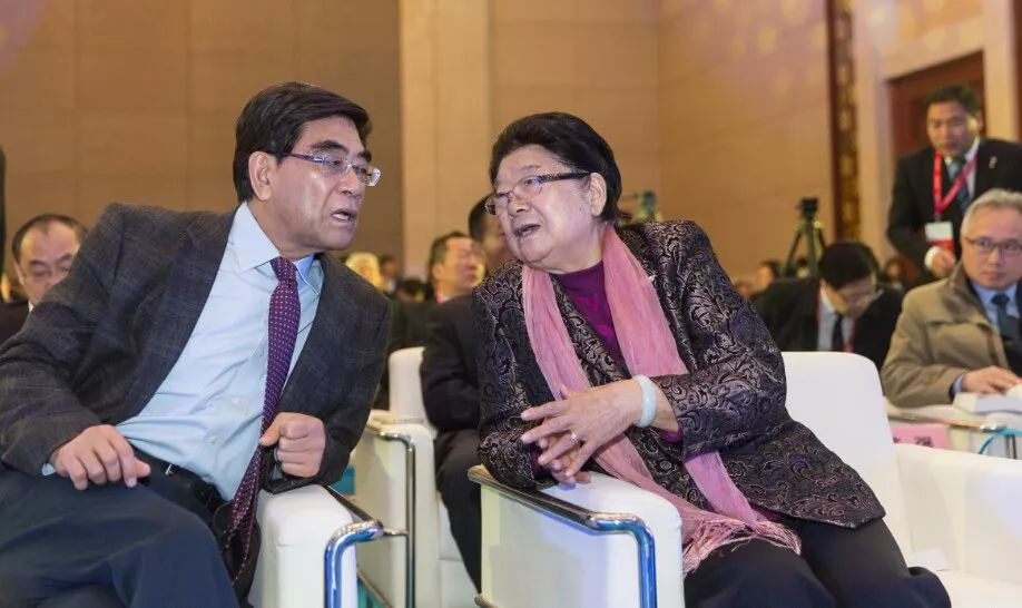 第十屆全國(guó)人大常委會(huì)副委員長(zhǎng)顧秀蓮(右)與全國(guó)政協(xié)常委、中國(guó)石油化工集團(tuán)公司原董事長(zhǎng)、黨組書(shū)記傅成玉(左)在第九屆國(guó)際石油產(chǎn)業(yè)高峰論壇現(xiàn)場(chǎng)交流