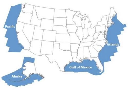 美國聯(lián)邦政府擬開放的海上區(qū)塊位置