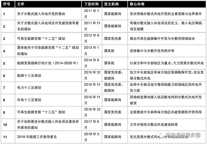 1、2011年7月國(guó)家能源局下發(fā) 《關(guān)于分散式接入風(fēng)電開發(fā)的通知》 (國(guó)能新能 〔2011〕 226 號(hào)) ,首次明確我國(guó)分散式風(fēng)電開發(fā)的主要思路與邊界條件,就積極穩(wěn)妥、因地制宜地做好分散式接入風(fēng)電開發(fā)工作做出了相應(yīng)安排和部署。