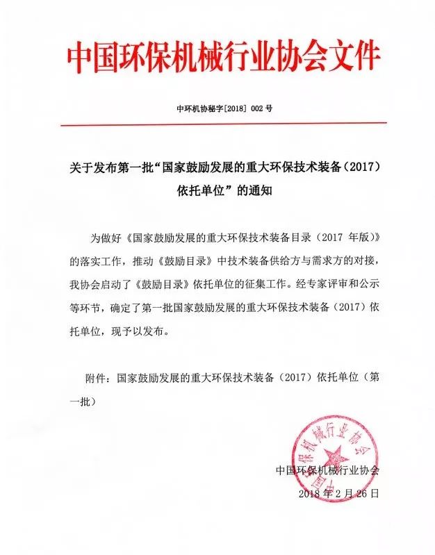 近日,中國環(huán)保機械行業(yè)協(xié)會公布了第一批“國家鼓勵發(fā)展的重大環(huán)保技術(shù)裝備依托單位”,杰瑞環(huán)??萍加邢薰荆ㄒ韵潞喎Q“杰瑞環(huán)保”)的三項環(huán)保裝備入選。