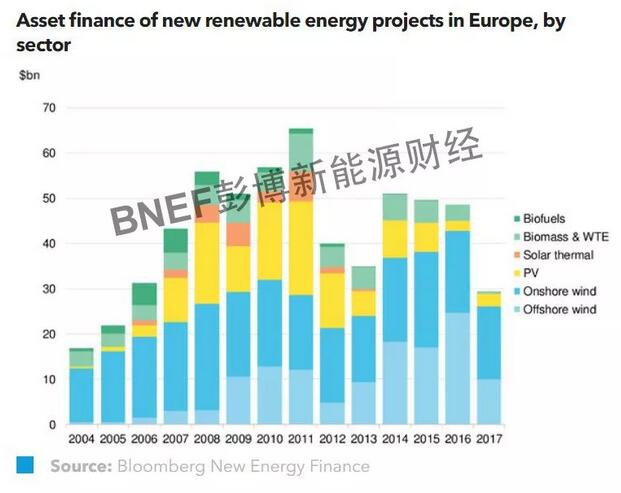 2017年,歐洲投資銀行對可再生能源提供融資的規(guī)模達47億美元,較上年水平增長21%。