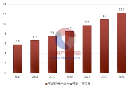 2017-2023年我國節(jié)能環(huán)保產(chǎn)業(yè)產(chǎn)值預(yù)測(單位:萬億元)