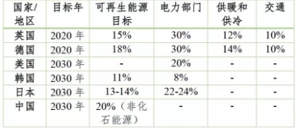 表1. 國家/地區(qū)可再生能源發(fā)展目標(biāo)