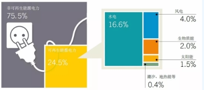 圖1. 2016年全球可再生能源電力發(fā)展情況