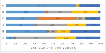 圖2. 主要國家發(fā)電結(jié)構(gòu)