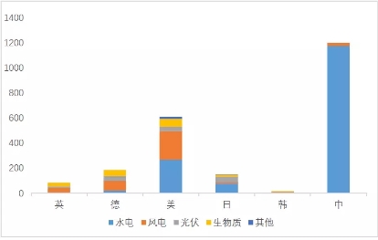 圖3. 主要國家可再生能源發(fā)電量情況