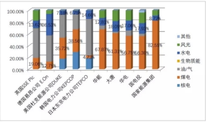 圖 4. 國內(nèi)外電力企業(yè)電力裝機(jī)結(jié)構(gòu)對比