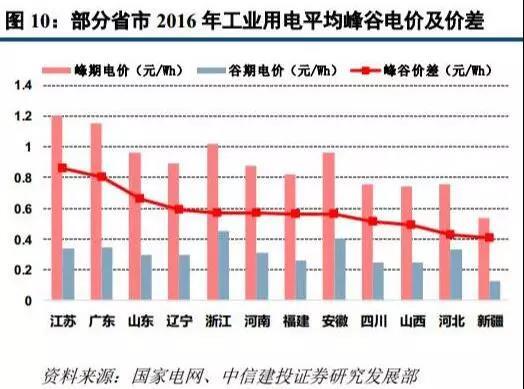 事實上,在政策之前,部分市場也具備了儲能的商業(yè)模式,如峰谷價差較多的城市。據(jù)不完全統(tǒng)計,全國34個省份中,共有16個省份發(fā)布了峰谷電價表,包括北京、上海、天津、河北、廣東、江蘇、浙江、山西等。據(jù)業(yè)內(nèi)人士測算,若峰谷價差超過0.8元,儲能光伏電站的盈利模式可觀,特別是用電量大的工商業(yè)企業(yè)。
