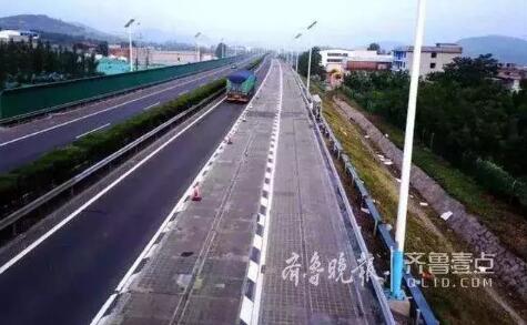 近日,濟南南繞城高速光伏路面試驗段光伏路面所在的車道被工程人員暫時封閉進(jìn)行維修,車輛只能從左側(cè)車道走。
