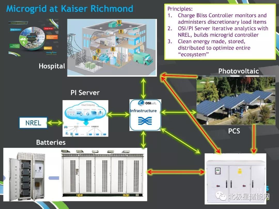 據(jù)研究分析,微電網(wǎng)在學(xué)校醫(yī)院等場(chǎng)所應(yīng)用市場(chǎng)最具前景,美國(guó)加州凱撒醫(yī)院的案例包含了光伏、儲(chǔ)能、電動(dòng)汽車等多項(xiàng)新能源技術(shù),具有代表意義。