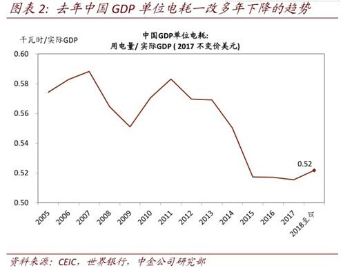 近日,國家能源局宣布修訂用電量數(shù)據(jù)的行業(yè)分類,更是加重了市場對用電量增長可信性的疑慮。如圖表1所示,今年以來用電量增速高于工業(yè)生產(chǎn),且單位GDP電耗常年下降后重拾升勢(圖表2)——今年1-6月用電量增速達(dá)到9.4%,而同期工業(yè)值增速為6.7%,實(shí)際GDP增速為6.8%。