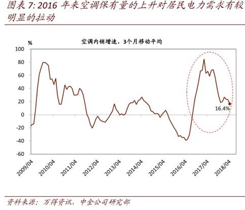 在城鎮(zhèn)化加速和消費(fèi)升級的雙重推動下,居民用電對整體用電增長的貢獻(xiàn)率日益提高。雖然2017年居民用電占比僅為14%,但其對用電量增長的貢獻(xiàn)突出——2017年居民用電同比增長7.8%,而2018上半年加速至13.2%,其增長持續(xù)高于同期整體用電量增速。