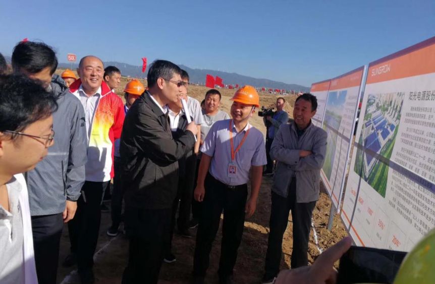 近日,國家能源局新能源司新能源處處長熊敏峰一行赴山西嵐縣考察光伏扶貧項目,重點參觀了陽光電源位于西土峪村的農(nóng)光互補項目現(xiàn)場,實地了解項目的建設(shè)進度,并鼓勵大家保證工程質(zhì)量和施工安全,全面加快推進項目建設(shè)。