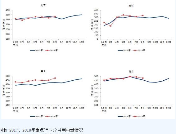 1-8月份,化學(xué)原料制品、非金屬礦物制品、黑色金屬冶煉和有色金屬冶煉四大高載能行業(yè)用電量合計(jì)12483億千瓦時(shí),同比增長(zhǎng)5.2%;合計(jì)用電量占全社會(huì)用電量的比重為27.6%,對(duì)全社會(huì)用電量增長(zhǎng)的貢獻(xiàn)率為16.6%。其中,化工行業(yè)用電量2938億千瓦時(shí),同比增長(zhǎng)2.2%;建材行業(yè)用電量2236億千瓦時(shí),同比增長(zhǎng)5.6%;黑色金屬冶煉行業(yè)用電量3536億千瓦時(shí),同比增長(zhǎng)11.2%;有色金屬冶煉行業(yè)3773億千瓦時(shí),同比增長(zhǎng)2.2%。