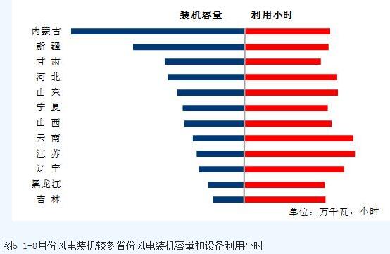 分類型看,1-8月份,全國(guó)水電設(shè)備平均利用小時(shí)為2338小時(shí),比上年同期增加34小時(shí)。在水電裝機(jī)容量超過1000萬千瓦的8個(gè)省份中,青海、廣西、湖北、云南和貴州同比分別增加907、298、240、180和134小時(shí),湖南、廣東和四川同比分別降低589、106和66小時(shí);全國(guó)火電設(shè)備平均利用小時(shí)為2939小時(shí)(其中,燃煤發(fā)電設(shè)備平均利用小時(shí)2950小時(shí)),比上年同期增加145小時(shí)。分省份看,全國(guó)共有12個(gè)省份火電設(shè)備利用小時(shí)超過全國(guó)平均水平,其中江西3529小時(shí),河北和安徽超過3400小時(shí),內(nèi)蒙古、江蘇、陜西、山東、寧夏、福建、天津和海南超過3000小時(shí),云南和西藏分別僅為1271和218小時(shí)。與上年同期相比,全國(guó)共有25個(gè)省份火電利用小時(shí)數(shù)同比增加,其中,福建同比增加超過800小時(shí),增加843小時(shí),湖南、廣東、廣西和云南同比增加超過400小時(shí),分別增加508、476、473和448小時(shí),而青海、江蘇、寧夏、山東、新疆和陜西同比降低,其中青海、江蘇、寧夏、山東和新疆同比分別降低492、270、215、147和134小時(shí);全國(guó)核電設(shè)備平均利用小時(shí)4820小時(shí),比上年同期增加77小時(shí);全國(guó)并網(wǎng)風(fēng)電設(shè)備平均利用小時(shí)1412小時(shí),比上年同期增加167小時(shí);全國(guó)太陽能發(fā)電設(shè)備平均利用小時(shí)851小時(shí)。