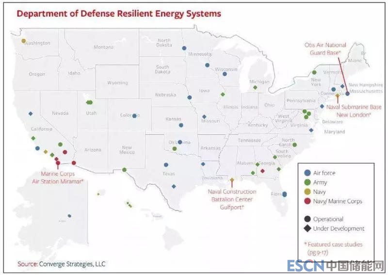 比如:密西西比州的光伏系統(tǒng)與柴油發(fā)電機相連,以及為海軍基地供電的儲能系統(tǒng);馬薩諸塞州Cape Cod國民警衛(wèi)隊基地的一個風(fēng)力微電網(wǎng)將于明年上線。