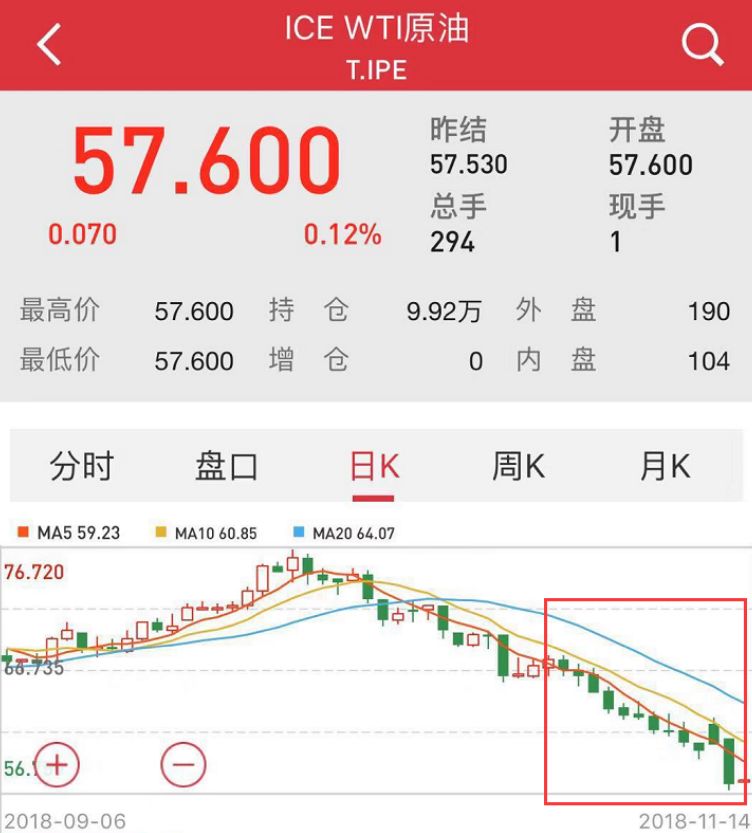 10月份以來,美原油更是從最高76.9美元,一路下跌至54.75美元,跌幅近30%。