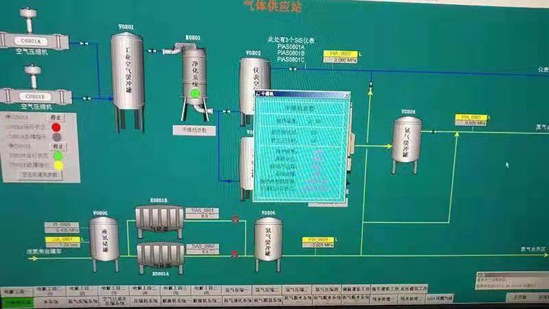 生產(chǎn)監(jiān)控方面,水電解制氫裝置采用PLC全自動(dòng)控制,PLC通過(guò)系統(tǒng)中裝配的各類傳感器,實(shí)時(shí)監(jiān)控制氫系統(tǒng)工作時(shí)的壓力、溫度、液位、電解電壓、電解電流、閥位狀態(tài)等參數(shù),并針對(duì)各個(gè)指標(biāo)設(shè)置報(bào)警值和軟連鎖值;針對(duì)關(guān)鍵參數(shù)如壓力、液位等參數(shù)設(shè)置機(jī)械式硬連鎖儀表及元件,以避免在系統(tǒng)突然斷電或PLC控制系統(tǒng)失控時(shí)發(fā)生危險(xiǎn)。在水電解制氫裝置中設(shè)置氧中氫含量和氫中氧含量在線分析儀,并設(shè)置氧中氫和氫中氧含量超量報(bào)警裝置,如達(dá)到超量極限,則連鎖關(guān)機(jī)。設(shè)氫氣檢漏報(bào)警裝置,并與相應(yīng)的排風(fēng)機(jī)聯(lián)鎖,當(dāng)空氣中氫氣濃度達(dá)到0.4%(體積比)時(shí),排風(fēng)機(jī)立即自動(dòng)開啟。