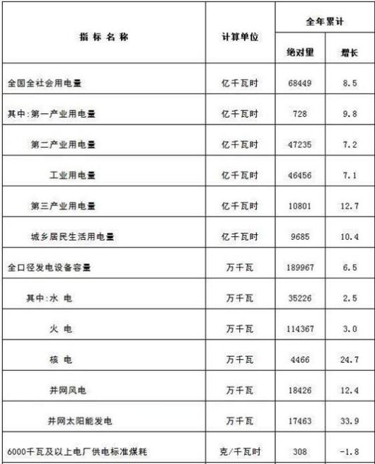 1月18日,國家能源局發(fā)布2018年全社會用電量等數(shù)據(jù)。2018年,全社會用電量68449億千瓦時,同比增長8.5%。創(chuàng)2012年以來增速新高。