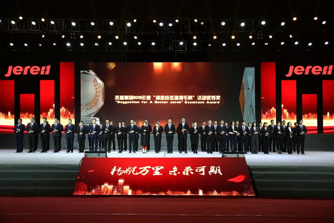 在行業(yè)轉(zhuǎn)暖的2018年里,杰瑞集團(tuán)取得了成績(jī)離不開客戶的支持與信任,同樣也離不開集團(tuán)全體員工的努力與付出。在此次年會(huì)上,杰瑞集團(tuán)對(duì)2018年度表現(xiàn)突出的單位、個(gè)人和團(tuán)隊(duì)進(jìn)行了隆重表彰,共頒發(fā)了優(yōu)秀團(tuán)隊(duì)、CEO特別獎(jiǎng)、突出貢獻(xiàn)個(gè)人、團(tuán)隊(duì)以及五年“青金獎(jiǎng)”、十年“黃金獎(jiǎng)”、十五年“紫金獎(jiǎng)”、董事長(zhǎng)轎車獎(jiǎng)等獎(jiǎng)項(xiàng),近千名獲獎(jiǎng)代表上臺(tái)領(lǐng)獎(jiǎng)。