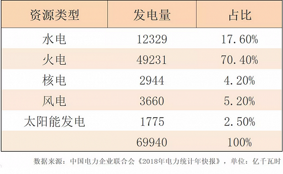 目前,我國(guó)風(fēng)電、光伏在電力結(jié)構(gòu)中仍只占據(jù)較小的比重。2018年,全國(guó)風(fēng)電、光伏發(fā)電量分別為3660億千瓦時(shí)、1775億千瓦時(shí),占據(jù)全部發(fā)電量的5.2%、2.5%。