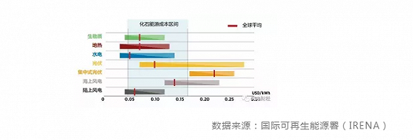 國(guó)際可再生能源署(IRENA)預(yù)計(jì),隨著技術(shù)進(jìn)步,2019年全球成本最低的風(fēng)電和光伏項(xiàng)目的度電成本將達(dá)到甚至低于3美分/千瓦時(shí),成為最經(jīng)濟(jì)的綠色電力。