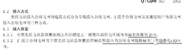 戶用光伏容量,不超過(guò)接入變壓器容量25%的要求,來(lái)自于2011年5月6日實(shí)施的國(guó)家電網(wǎng)企業(yè)標(biāo)準(zhǔn):Q/GDW617-2011。