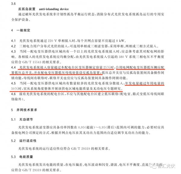 隨著戶用光伏的發(fā)展,2017年推出了《戶用分布式光伏發(fā)電并網(wǎng)接口技術(shù)規(guī)范》。該規(guī)范中,雖然對(duì)接入規(guī)模雖然沒(méi)有具體要求,然而要求: