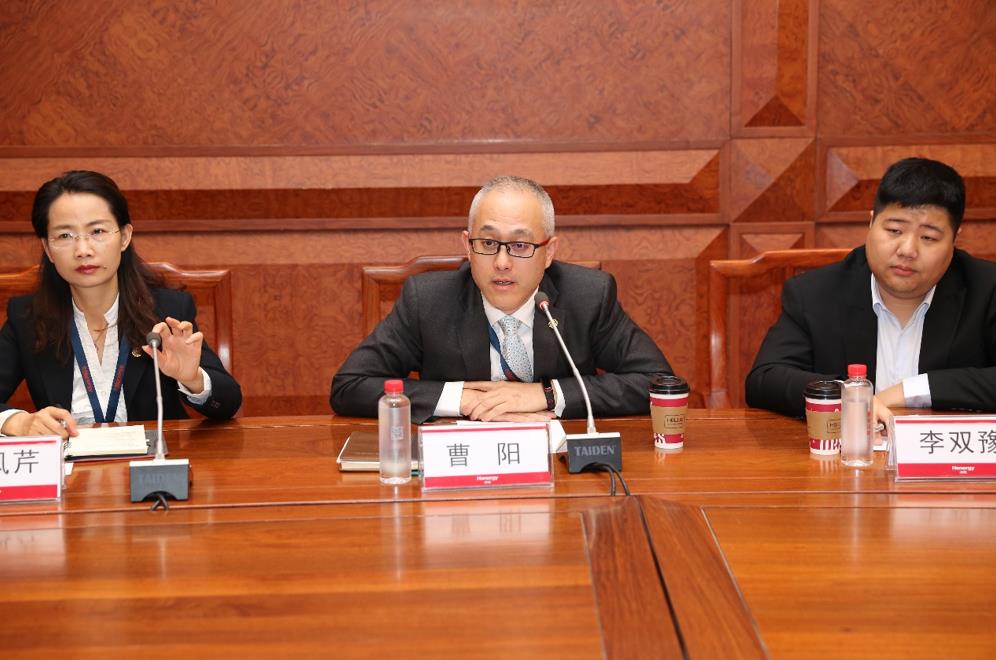 圖:漢能薄膜發(fā)電集團(tuán)高級(jí)副總裁曹陽(中)回答記者問題