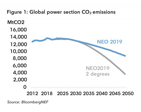 根據(jù)今年的NEO,全球溫室氣體排放和將氣溫升幅控制在2攝氏度或更低水平的前景喜憂參半。一方面,太陽能、風(fēng)能和電池的發(fā)展將使世界至少在2030年之前都能實現(xiàn)這些目標(biāo)。另一方面,在那個日期之后還需要做更多的工作,才能使世界保持在2攝氏度的軌道上。