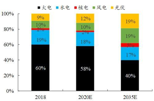根據(jù)國泰君安公用事業(yè)團隊的預(yù)測,2035年全國電源裝機將達到36億千瓦,其中清潔能源裝機占比將由2018年的40%提升至60%,對火電的擠壓效應(yīng)將持續(xù)增強。