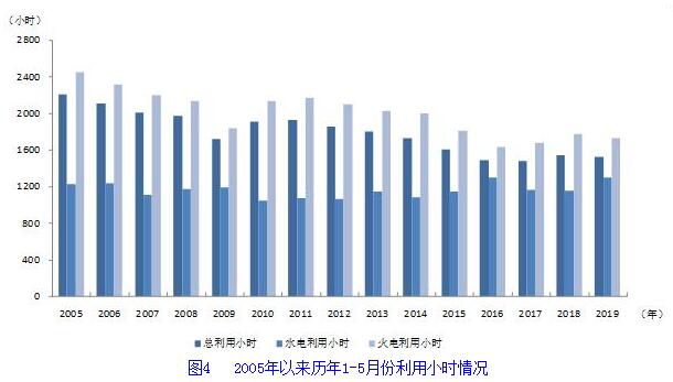 1-5月份,全國發(fā)電設(shè)備累計平均利用小時1519小時,比上年同期降低20小時。