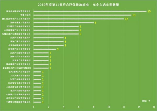 一、2019年第11批環(huán)保目錄車企列入新能源車型概況