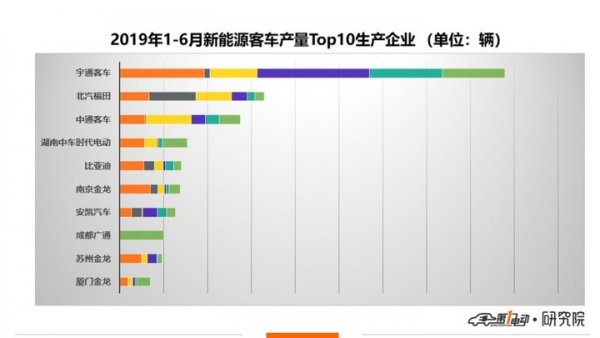2019年上半年累計來看,宇通客車繼續(xù)保持一家獨大局面,1-6月累計產(chǎn)出新能源客車8782輛,是排在第二位的近三倍。中通客車以2746輛的總成績位列第三名。