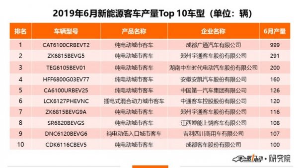 具體車型方面,成都廣通一款型號為CAT6100CRBEVT2純電動城市客車在6月單月產(chǎn)量最高,為999輛。其余進入Top 10新能源客車車型在6月產(chǎn)量均超百輛。Top 10車型中,僅有中通客車一款型號為LCK6127PHEVNC為插電式混合動力客車產(chǎn)品,其余均為純電動客車產(chǎn)品。(作者:明艷)