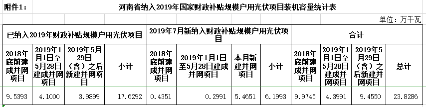 河南省7月納入2019年國家財政補貼規(guī)模戶用光伏項目名單(點擊下載)