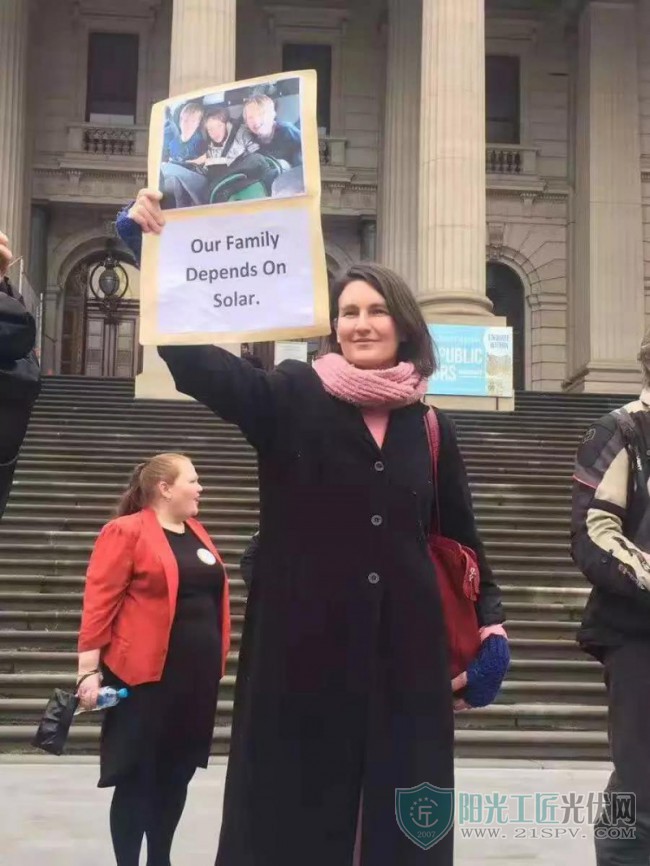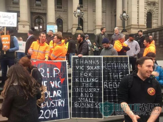 圖片:維州議會(huì)大樓前集會(huì)的光伏從業(yè)人員