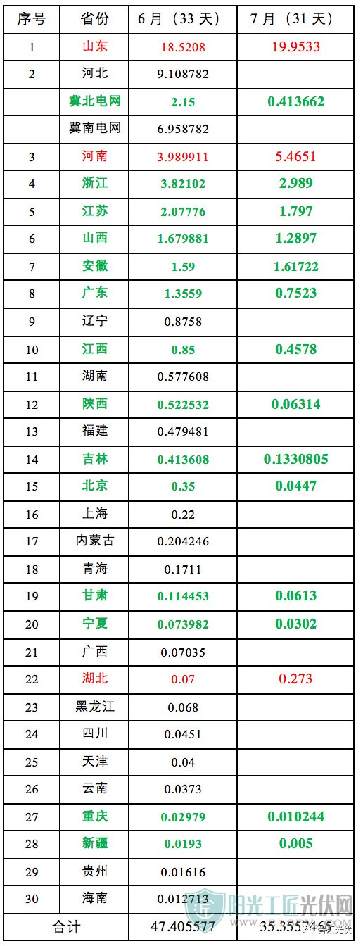 從上表可以看出目前,共14個(gè)省份的7月份戶用安裝規(guī)模尚未公開。