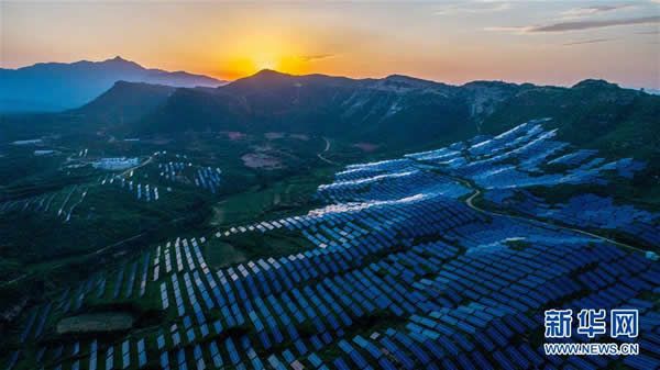 這是8月22日無人機(jī)拍攝的河北省內(nèi)丘縣柳林鎮(zhèn)虎頭山光伏電站。新華社記者 牟宇 攝