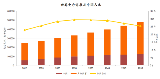 因?yàn)橹悄芑?、物?lián)網(wǎng)時(shí)代的到來(lái),電力需求增長(zhǎng)將更側(cè)重于民用端。民用和工商業(yè)將貢獻(xiàn)全社會(huì)用電增量的56%的份額。2030年前我國(guó)電力需求增幅略快于世界增速,使得全國(guó)占世界的比重上升至29%左右。