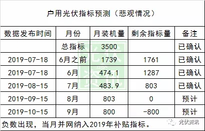 根據(jù)上面的預(yù)測表格可知,2019年8月份的裝機(jī)量最為重要,只要8月份的裝機(jī)量不超過803兆瓦,則戶用光伏完全可以安裝到10月份。