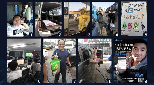 圖5:這張照片也是在長(zhǎng)春,是車(chē)主邦早期合作的一個(gè)加油站。當(dāng)時(shí),公司的設(shè)計(jì)人員也不夠用,所有線(xiàn)下地推人員都是"八仙過(guò)海,各顯其能"。要做活動(dòng)了,我們就去文具店買(mǎi)了紙和畫(huà)筆,同行的一位小伙伴現(xiàn)場(chǎng)蹲著畫(huà)了這張海報(bào),結(jié)果效果反而特別好。司機(jī)看慣了做的很精美的印刷體海報(bào),突然發(fā)現(xiàn)了一張手繪的,反而會(huì)關(guān)注。當(dāng)時(shí)有人就問(wèn):"'你們這個(gè)活動(dòng)怎么回事啊?'之類(lèi),那天我們的活動(dòng),也特別的成功。"以上這幾張照片看得出來(lái),"創(chuàng)業(yè)初期,我們?cè)?jīng)有多么多么的艱難…… "