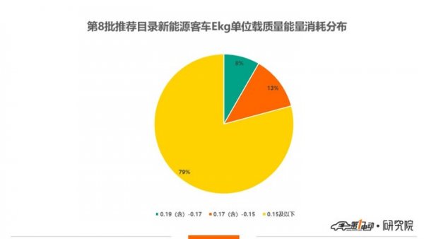 非快充類客車,從其單位載質(zhì)量能量消耗量,即Ekg水平來(lái)看,79%車型Ekg水平在0.15Wh/km·kg以下,可獲得1倍補(bǔ)貼系數(shù);9款客車Ekg水平在0.15-0.17(含)之間,可獲得0.9倍補(bǔ)貼系數(shù);其余6款車型可獲得0.8倍補(bǔ)貼系數(shù)。