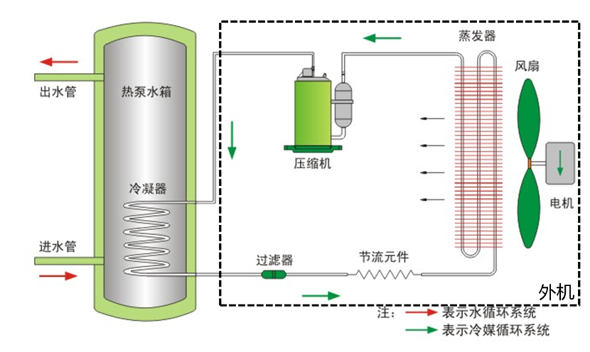圖1:熱泵熱水器工作原理圖(來自網(wǎng)絡(luò))