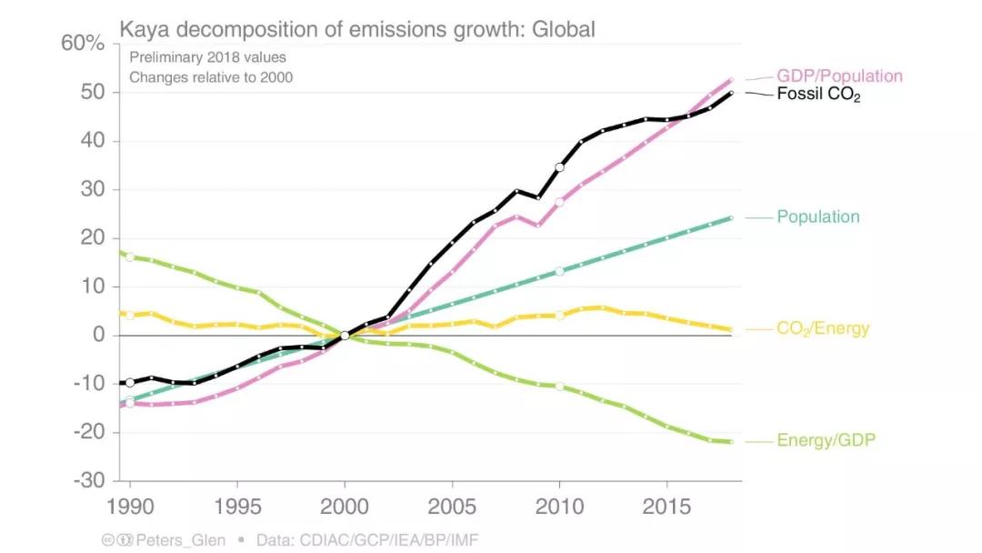 從2000年到2018年,全球:
